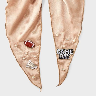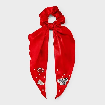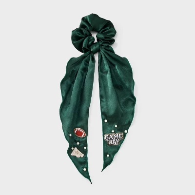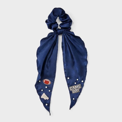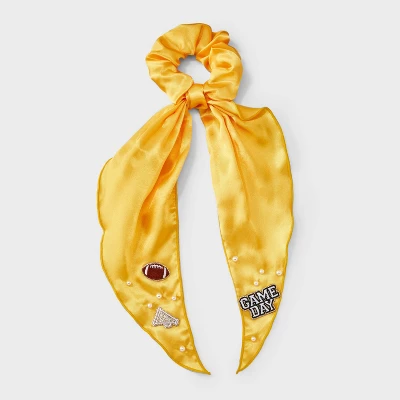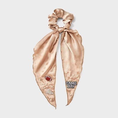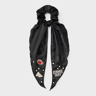 Game day hair twister from Wild Fable™ features football, trophy and “Game Day” text patches along with faux pearls. Made of recycled polyester fabric with tails. Suitable for all hair types.