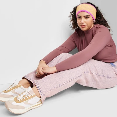 Long-sleeve mock-neck tee from Wild Fable™ in a solid hue. Crafted from an extra-lightweight recycled polyester fabric blend with spandex for stretchy comfort. Tailored in a slim-fit silhouette with a cropped length that hits above the waist. Features a long-sleeve design with a mock turtleneck.
