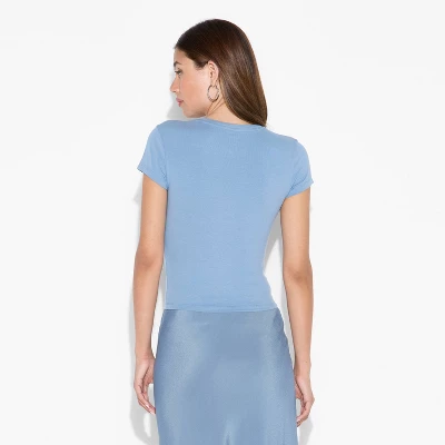 Solid-color T-shirt from Wild Fable™ with a crew neckline, short sleeves and a mid-length hemline. Crafted from lightweight cotton jersey fabric with spandex for breathable, flexible comfort that moves with you. Pullover style completes the look.